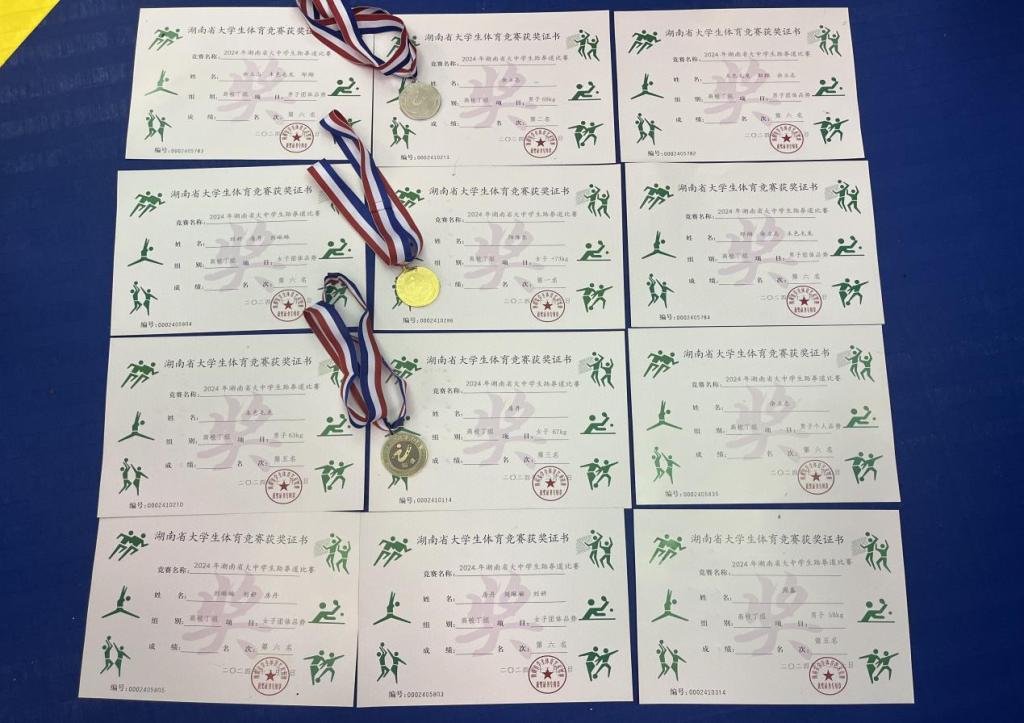本次比赛我校代表队获得品势团体总分高职高专组第6名、竞技团体总分高职高专组第7名,学生个人荣获1金1银1铜,2个第5名,2个第6名的好成绩,一举实现我校在湖南省大中学生运动会上金牌的突破。