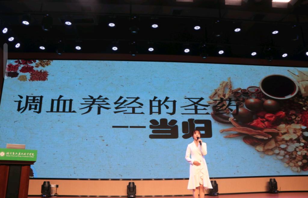闭幕式上,中药学院举行了“讲述中药故事比赛”。十余位选手相继登台,融合故事叙述、朗诵及PPT展示等多种形式,生动展现中药传奇与历史。荆夫救妻,妻盼君归,“当归”之名,流传芳华。中药2307班刘晨霓同学将当归的故事娓娓道来,从其名称由来,到药用功效,从药效再到情感所托,皆为悠悠岁月沉淀的韵味。