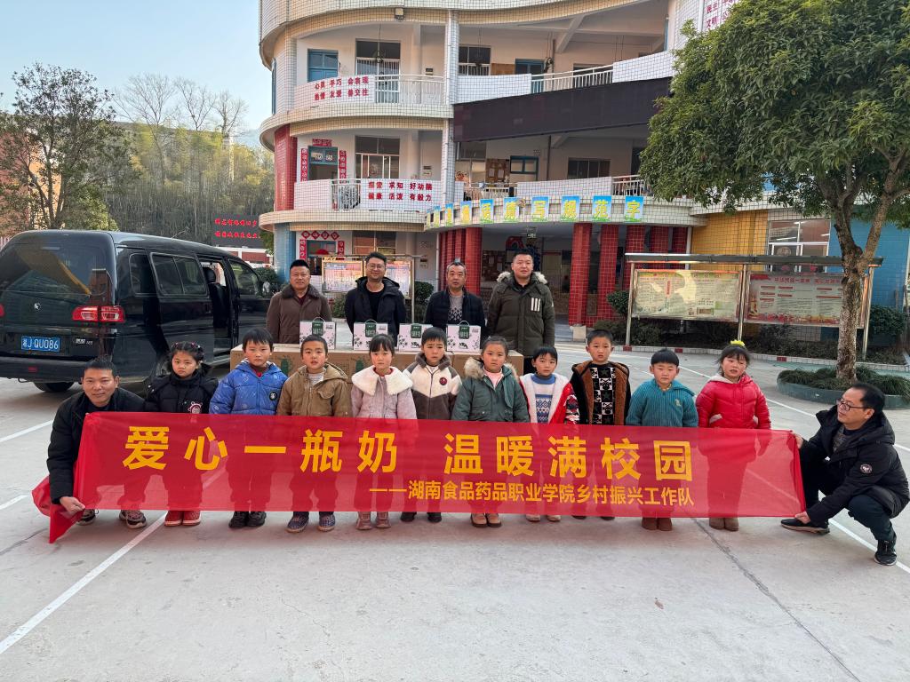为进一步巩固拓展脱贫攻坚成果,开展教育帮扶促进乡村全面振兴,1月2日,湖南食品药品职业学院驻三圣乡天门垭村乡村振兴工作队,在学校党委的支持和帮助下,在三圣乡完全学校开展爱心牛奶捐资活动。