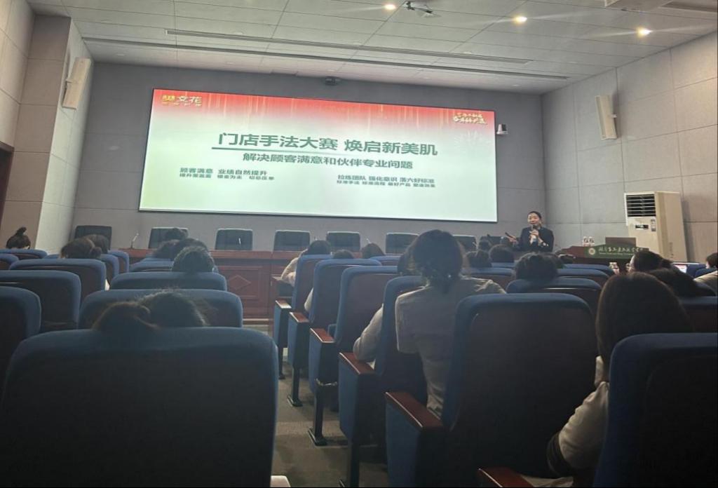此次培训针对妆管专业在校学生和公司员工差异性,校企授教老师共同商议,制定详实的培训内容。既有如何从专业角度探讨如何提高樊文花门店持续增长所关注的三个板块:老顾客的满意度与消耗、门店伙伴手法标准与皮肤管理方案搭配和新客纳新及转化,又有来自樊文花总部运营总监带来的爆品战略营销。