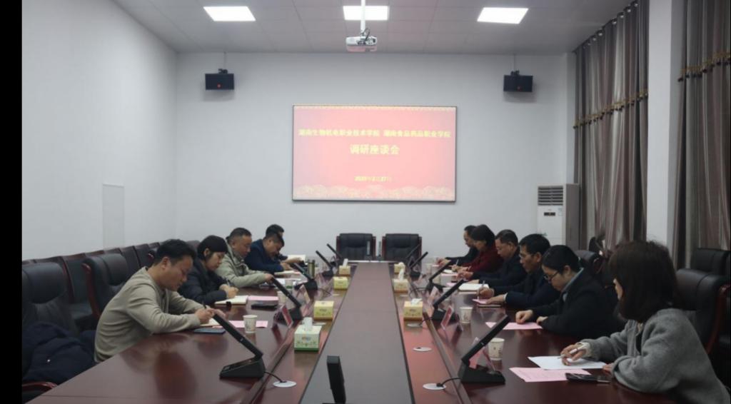 2025年2月27日,湖南生物机电职业技术学院党委委员、副校长唐荣华,动物科技学院院长刘鹤翔等一行莅临我校就楚怡杯湖南技能竞赛赛项、食品类专业建设进行交流活动。我校党委委员、副校长张雪昀,药学院院长万能、食品学院院长吴美香等老师参加交流会。