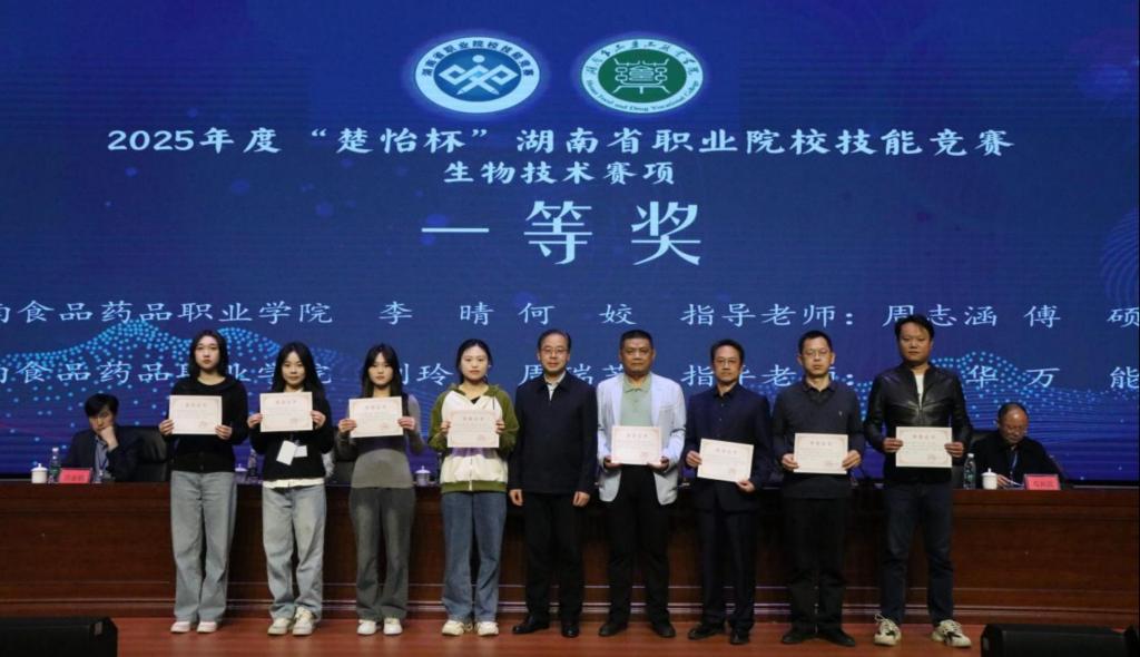 3月21-23日,2025年度“楚怡杯”湖南省职业院校技能竞赛生物技术赛项在我校成功举行。来自全省职业院校18只队伍、36名选手同台竞技,经过3天的激烈角逐,最终产生一等奖2个,二等奖4个,三等奖5个。其中我校六名选手李晴、何娇、刘玲丽、周瑞芝荣获一等奖;吴佳莉、胡夕紫两位选手获得二等奖。