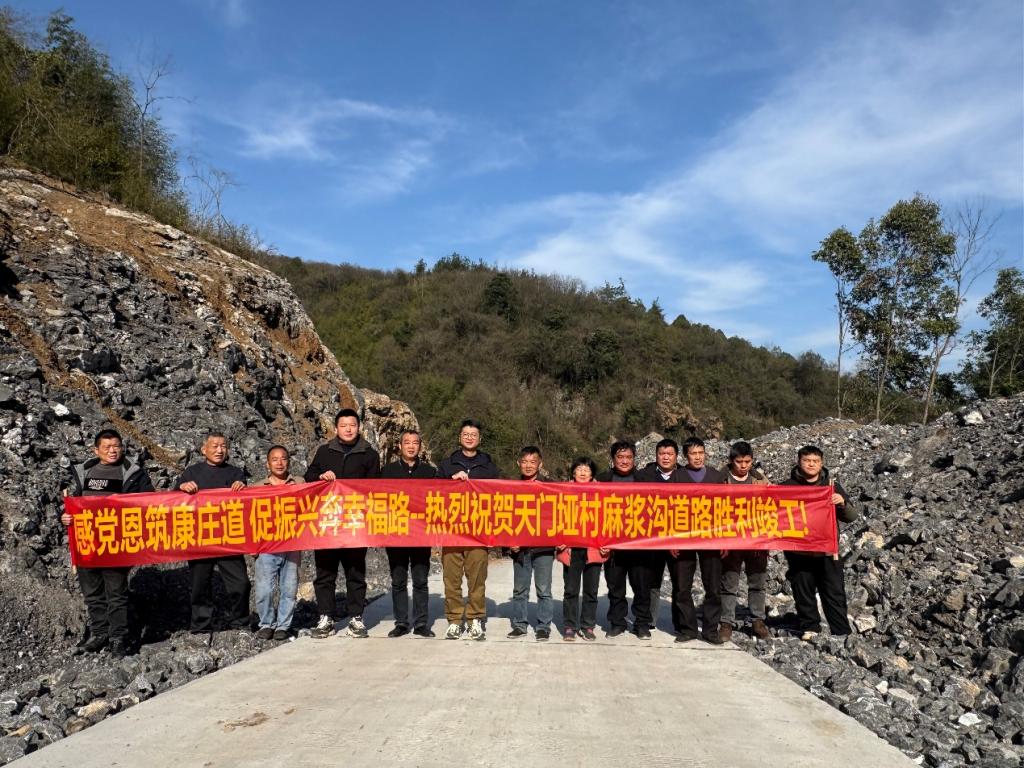 湖南食品药品职业学院乡村振兴工作队驻天门垭村以来,在麻浆沟片区召开多次屋场会,数百余户村民们踊跃建言,工作队与村民连通党心民心,高度重视村民诉求,实地勘察道路状况,就麻浆沟片区交通瓶颈问题积极与后盾单位党委汇报。在后盾单位党委的大力关心和支持下,驻村工作队协调各方资源科学制定了麻浆沟公路修建方案,同时积极筹措和争取各类专项资金,从路基整修、爆破降落差、筑堤修桥、路面硬化施工及道路保养的每一个阶段,驻村工作队全程监督工程进度,严格把控施工质量,确保麻浆沟-澧县龙洞峪这条幸福路、产业路、长久路、民心路、致富路顺利竣工通车。