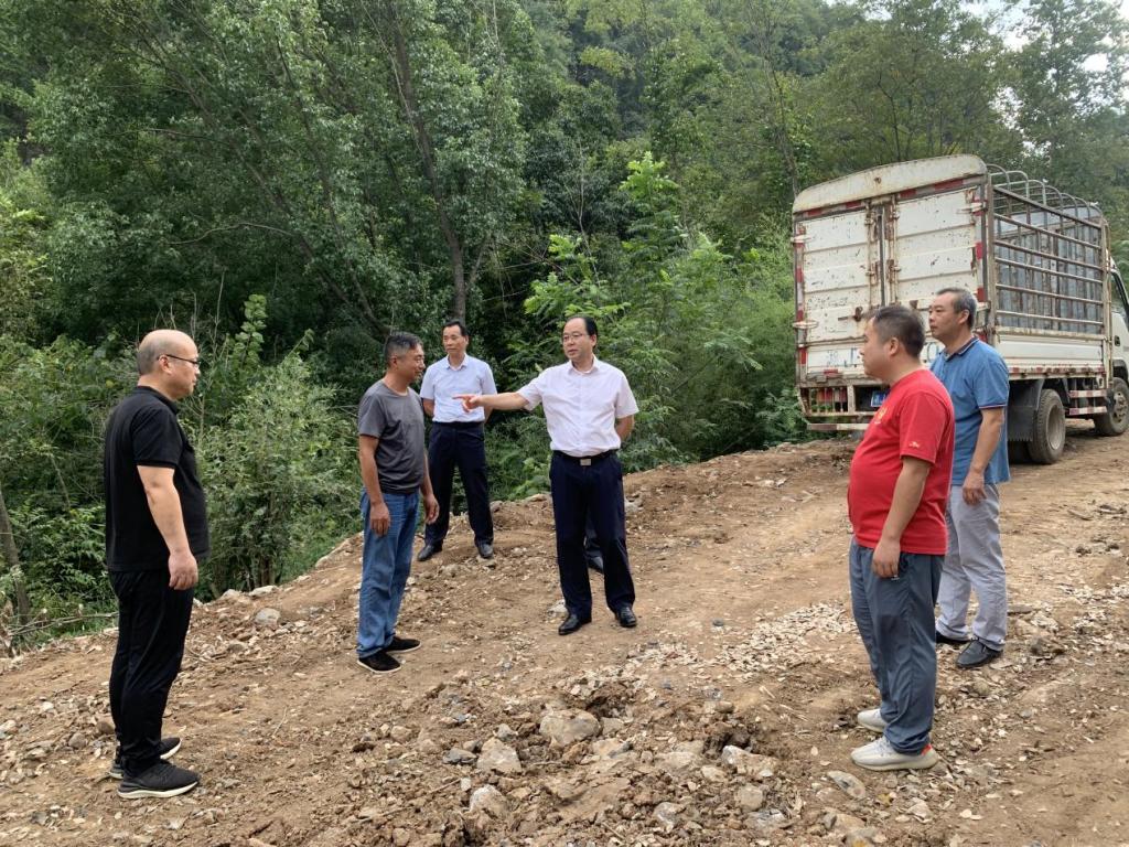 图3 后盾单位领导实地调研查看麻浆沟-龙洞峪道路