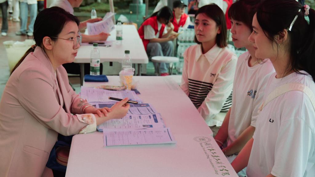 副校长欧健介绍,自2024年起,学校便持续推进“就业攻坚行动”:学校党委书记、校长带队走访60余家企业,联动食药、环保等产业园区开展40余次专项对接,促成21场企业进校宣讲。“此次参会的37家新增企业中,超八成源于校企深度合作成果。”面对学生的多元需求,学校提前建立“双组长”领导机制,8个专项组全流程保障:安全保卫组实施分级分流管控,志愿者服务组“一对一”对接企业,统计组实时更新岗位动态。大三学子杨肖林表示:“从岗位筛选到面试指导,学校‘保姆级’服务让人安心。”