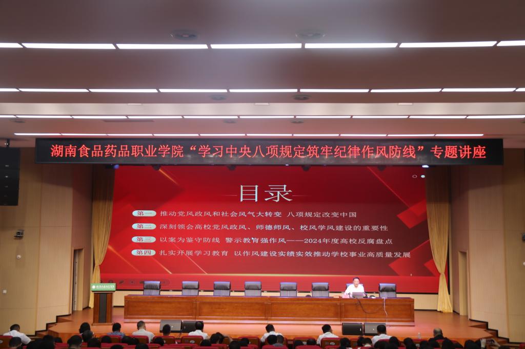 6月10日,学校举行“正校风 强教风 优学风 锲而不舍落实中央八项规定精神”专题党课。由党委书记杨文伟主讲,全体党员干部及教职员工代表参加。