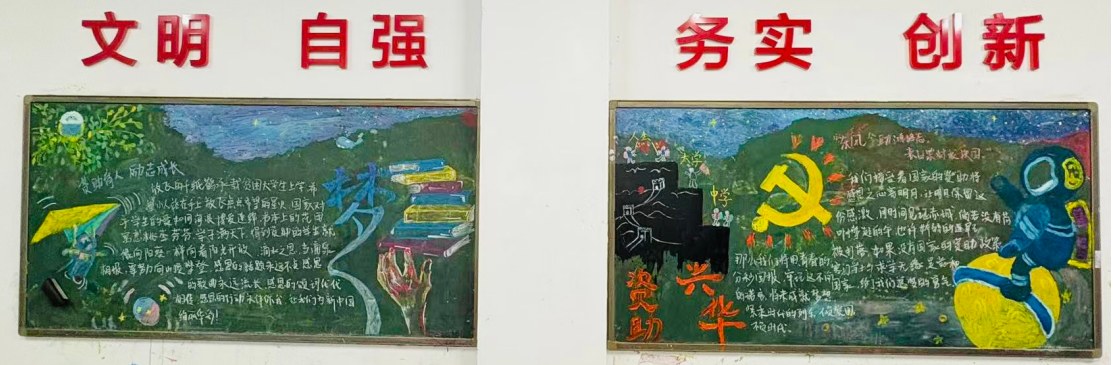 在短视频与黑板报创作比赛中,学生们结合专业特色挥洒创意:中药学院以“本草励志”为主题设计黑板报,食品学院通过镜头记录资助政策下的学习日常,各类作品既展现专业素养,又传递感恩情怀。