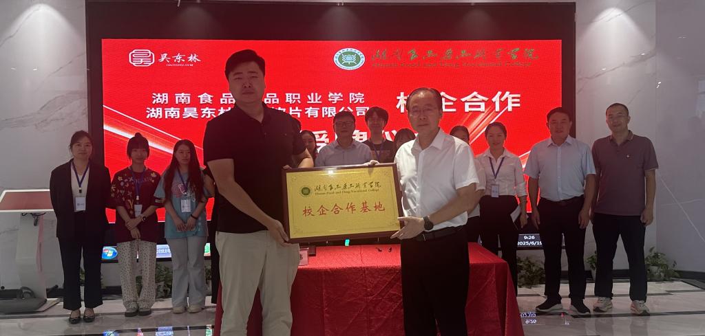 6月19日,我校与湖南昊东林中药饮片公司举行校企合作签约暨授牌仪式。党委副书记、校长虢剑波,党委委员、副校长欧健出席仪式。双方签署《校企合作框架协议》,并为“实习就业基地”“校企合作基地”揭牌。