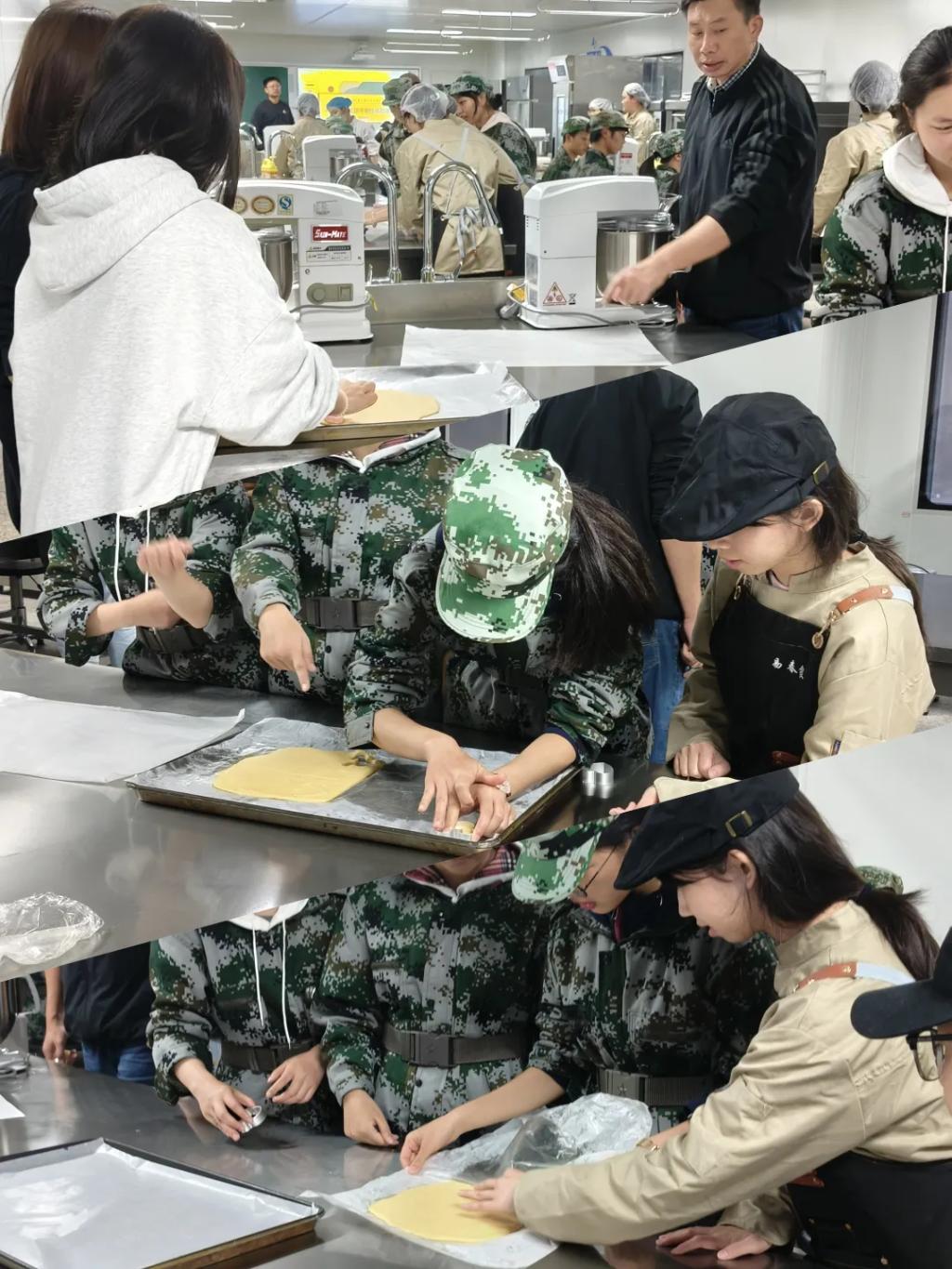 活动尾声,同学们将冷却后的曲奇装入透明包装袋、系上彩色丝带,手持“甜蜜成果”定格欢乐瞬间。食品学院还组织志愿者将多袋新鲜曲奇送往军训场地,身着迷彩服的新生接过饼干,咬下一口后疲惫尽散:“太甜了!谢谢学院的心意!”