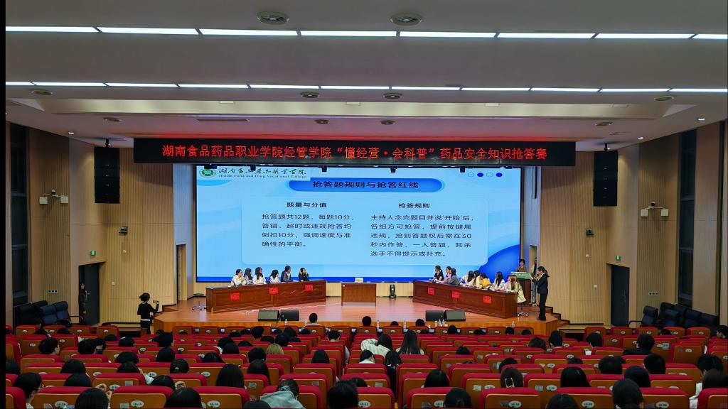 9月23日,我校经管学院“懂经营・会科普——药品安全知识抢答赛”在3号实验楼多功能厅顺利举行。本次竞赛面向2024级药品经营与管理专业全体学生,以“以赛促学、以学促用”为核心,旨在强化学生合规经营意识与合理用药专业素养,夯实专业能力根基。