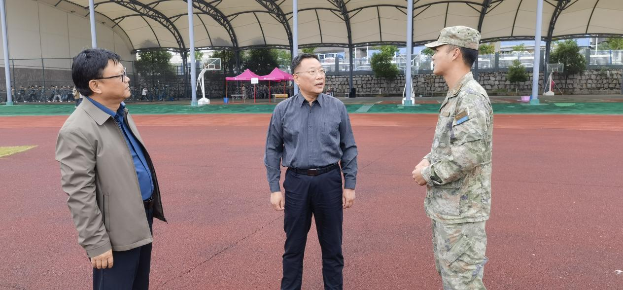 在军训场地,杨文伟、欧健与负责训练的教官亲切交流,详细询问军训日程安排、训练强度把控及学生适应状况,对教官们严谨的教学态度与专业的训练指导给予充分肯定。同时叮嘱教官在坚持严格训练的基础上,务必密切关注学生身体状态,做好防暑降温与应急保障,确保军训工作安全、有序推进。