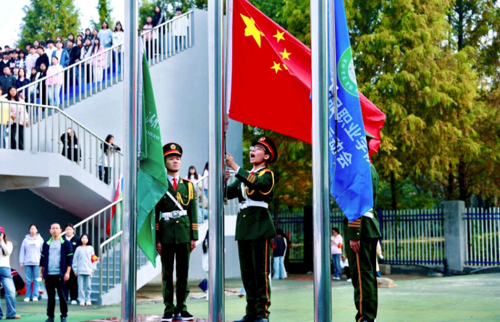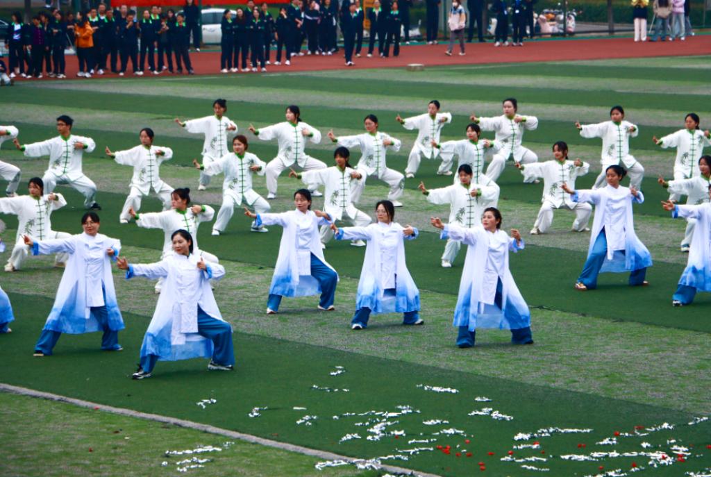 开幕式上,国旗护卫队铿锵入场,五星红旗迎风招展。各学院方阵衣冠整齐、精神抖擞,依次通过主席台,彰显我校学子昂扬向上、奋勇争先的风采。体艺表演中,八段锦功法展示更以其整齐划一的动作、刚柔并济的姿态,尽显传统文化底蕴与学子昂扬风采。