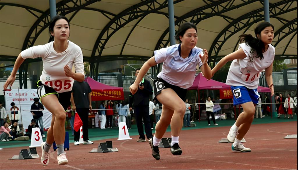 赛场上,运动健儿斗志昂扬、奋勇争先。径赛项目中,短跑选手们全力冲刺;接力队员默契配合、平稳交接。田赛项目中,跳高、跳远选手起跳比拼;拔河队员齐心协力竞争。场外,啦啦队呐喊助威;志愿者提供各项服务保障;裁判员恪守规则,公正执裁每一项赛事。赛场内外同心协力,共同保障了运动会的顺利进行。