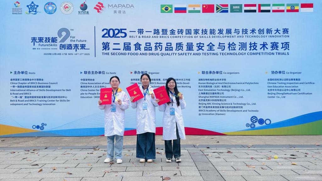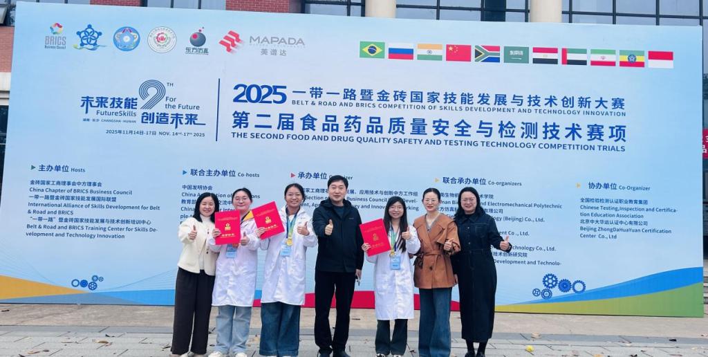此次荣誉的背后,是参赛师生日夜钻研、刻苦训练的不懈付出,更是学校深化产教融合、强化技能人才培养的生动见证。学校将以此比赛为契机,进一步深化教育教学改革,加强实践教学体系建设,推动校企协同育人,为食品药品行业输送更多具备国际视野、过硬技能与责任担当的高素质技术人才,为服务“一带一路”暨金砖国家技能合作与产业发展贡献教育力量。