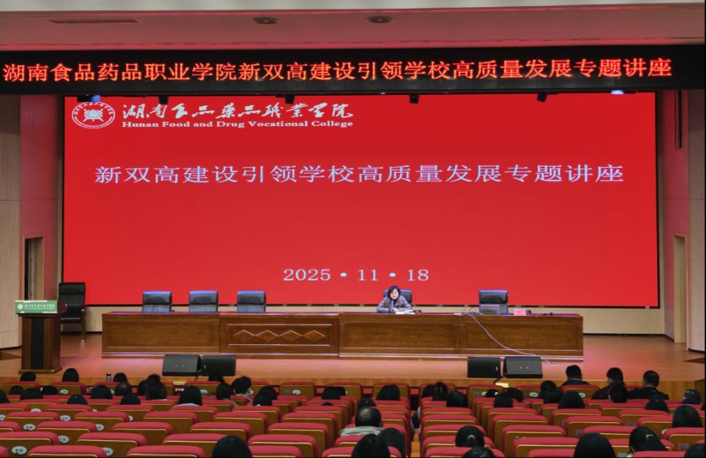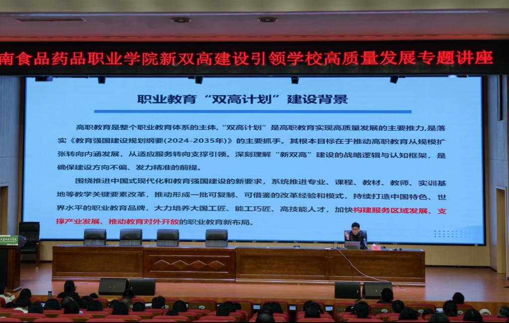 11月18日,我校在3号实验楼报告厅成功举办“新理念·新标杆·新引擎:‘新双高’引领学校高质量发展的战略逻辑与路径创新”专题培训讲座。学校党委委员、副校长万琼、欧健出席活动,全校教职工参加学习。讲座由教务处处长刘喜红主持。