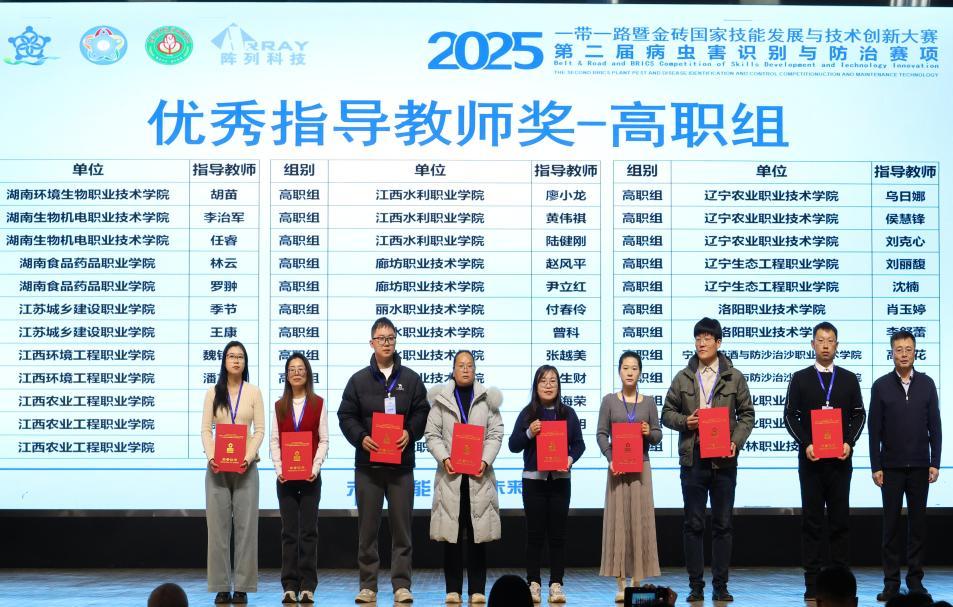 12月5日至7日,2025“一带一路”暨金砖国家技能发展与技术创新大赛第二届病虫害识别与防治赛项全国总决赛在辽宁农业职业技术学院圆满落幕。我校中药学院派出的三支代表队奋勇争先、沉着应战,最终斩获银牌(二等奖)1项、铜牌(三等奖)1项、优秀奖1项。指导教师林云、罗翀获评“优秀指导教师”,学校荣获“优秀组织奖”,在全国赛场为校争光。