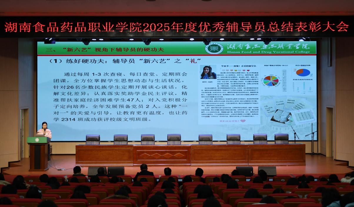 1月6日,我校在多功能报告厅召开2025年度优秀辅导员总结表彰大会。会议旨在表彰一年来在育人一线涌现的先进典型,全面回顾学生工作成绩,明确未来发展方向。学校党委副书记、校长虢剑波,党委委员、副校长欧健出席会议,各二级学院党政负责人、党总支副书记、全体专兼职学工人员及学生代表共同参会。