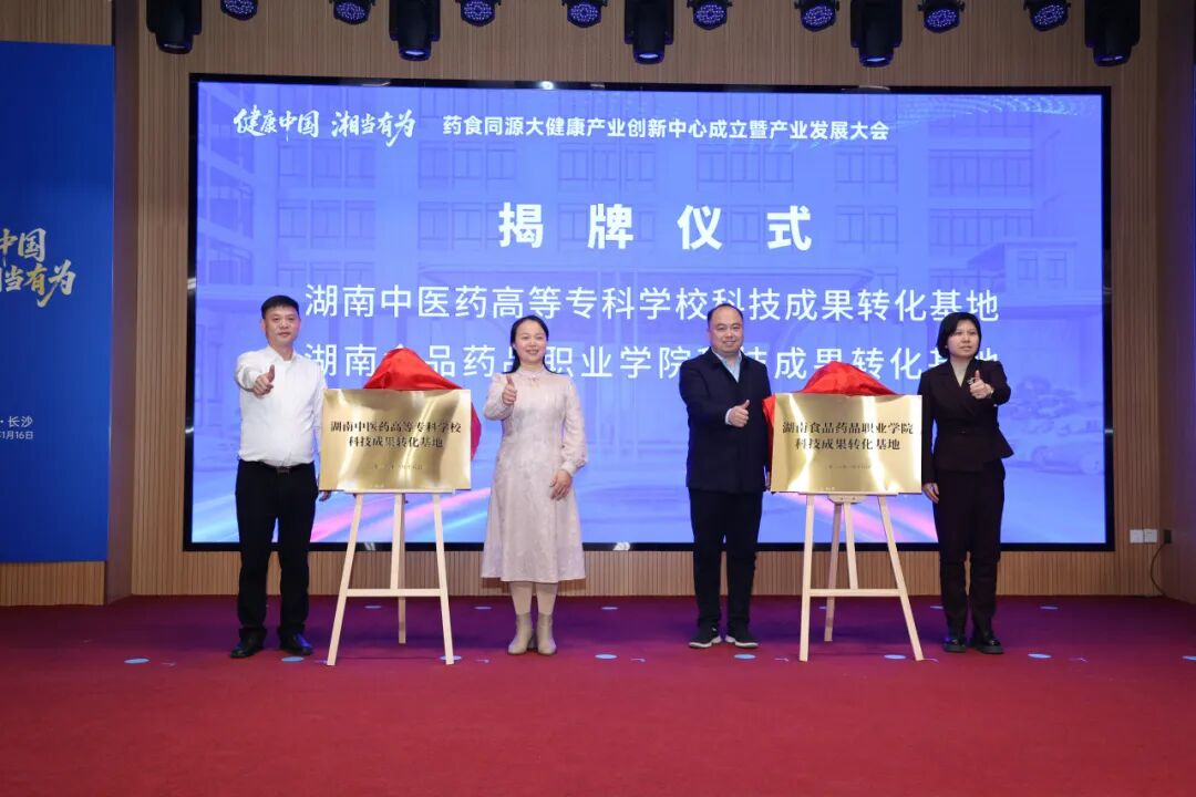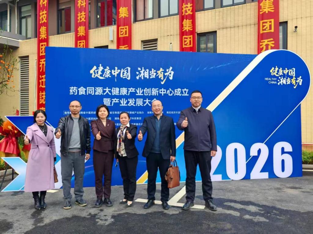 1 月 16 日,湖南省药食同源大健康产业创新中心成立暨产业发展大会在雨花经开区湖南竹海堂医疗科技集团隆重举行。学校党委委员、副校长万琼携中药学院、经管学院、食品学院及科研与发展规划处等相关部门负责人参会,以实际行动践行产教融合、校企合作理念,助力湖南药食同源产业高质量发展。