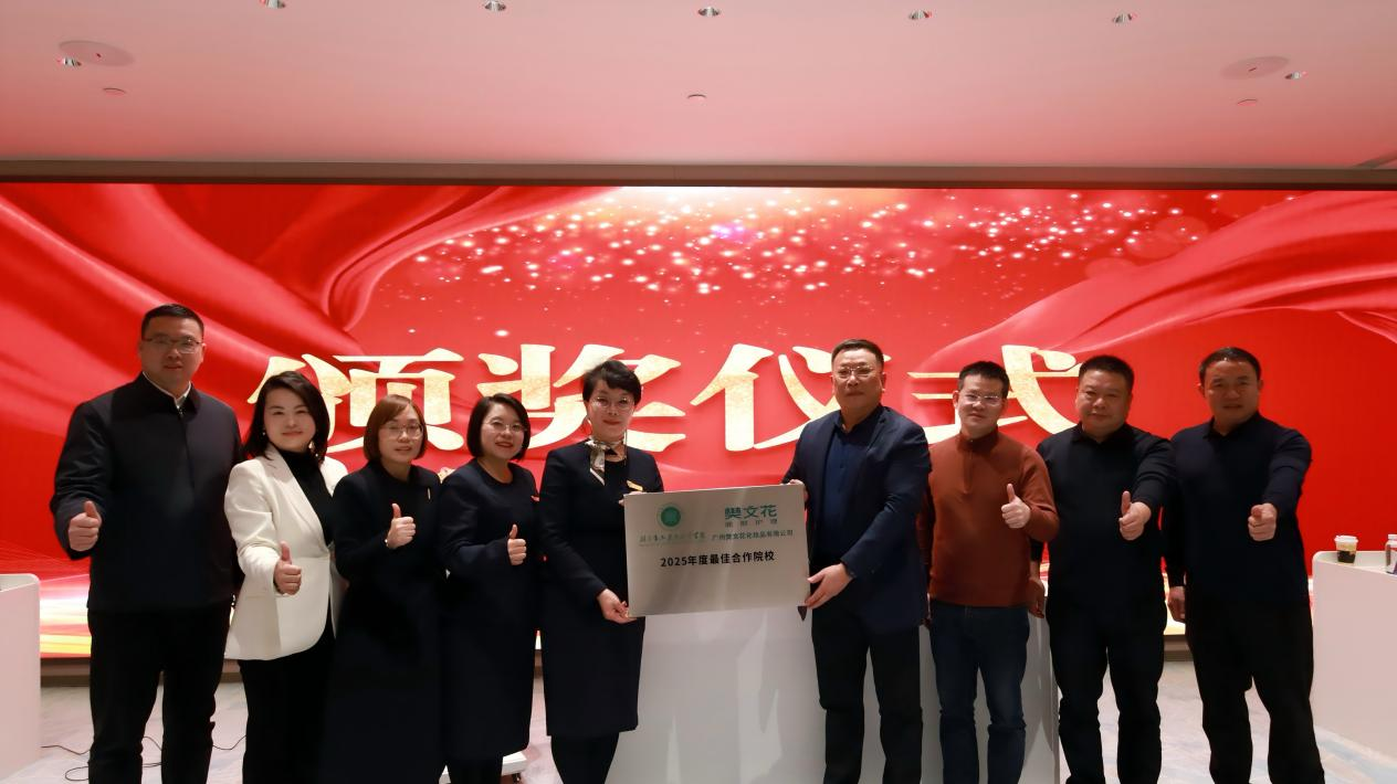1月22日,我校党委书记杨文伟带队赴广州樊文花化妆品有限公司,参加“校企深度合作与产教融合模式探索升级论坛”。学校凭借深厚的合作基础与显著成效,获评该公司2025年度最佳合作院校,双方围绕美妆行业人才培养、产学研协同创新等核心议题深入交流,共绘合作新蓝图。