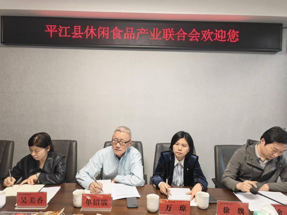 随后,座谈交流会在平江县食品行业协会办公室召开。童湘平秘书长汇报了平江县休闲食品产业发展现状、成效与规划,并提出人才培养、设备攻关、产品创新、海外拓展四项重点举措。