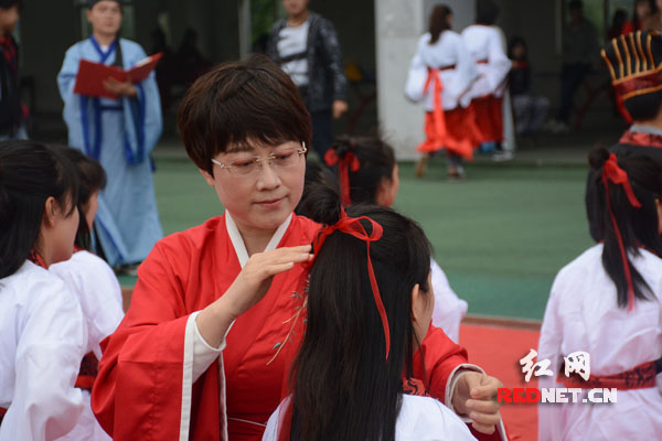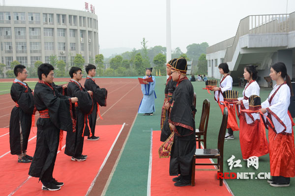 这是湖南食品药品职业学院中药学院举办的第三届成人礼仪式,其主题为“青春孕育希望、责任铸就未来”。舞台上,19名学生代表身穿汉服,与身穿汉服的老师相对而站,随着司仪“行叩拜礼”的口令响起,学子们纷纷行礼,老师们也俯身为他们“加冠”“加笄”。现场响起了热烈的掌声与欢呼声。