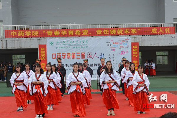 4月24日下午,湖南食品药品职业学院中药学院举办了第三届成人礼仪式。