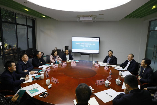 新湖南客户端12月3日讯(通讯员 邓媚 兰锫)12月1日,在千金集团总部会议室举行了湖南食品药品职业学院与千金集团校企合作办学签约暨授牌仪式,湖南食品药品职业学院党委书记杨文伟、千金集团董事长江端预分别代表校企双方在协约上签字并授牌。千金集团研究院副院长左之文、千金人力资源总监欧阳勇等企业代表,学院党委委员、副校长邓兴国,经管学院党政班子成员,招生就业处及经管学院订单班学生共同见证。