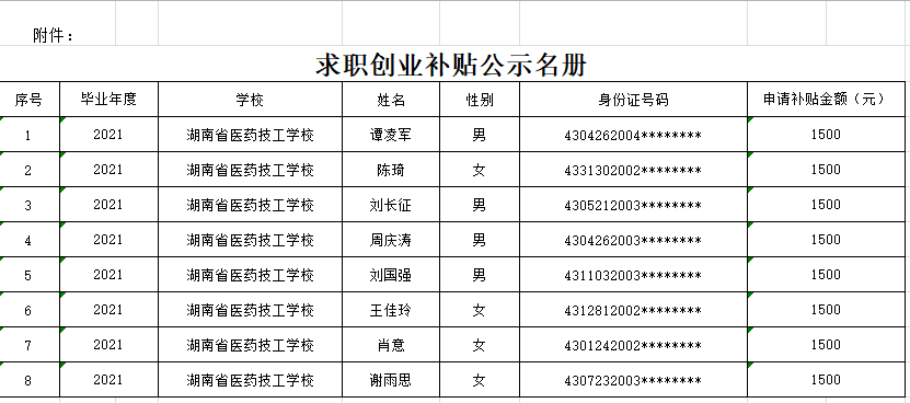 根据《湖南省人力资源和社会保障厅 湖南省教育厅 湖南省财政厅关于进一步做好应届毕业生求职创业补贴发放工作的通知》(湘人社发〔2015〕60号)和《长沙市人力资源和社会保障局关于做好2021届毕业生求职创业补贴发放工作的通知》文件要求。我校开展了2021届毕业生“求职创业补贴”的申报工作,经个人申请,学院审核,现将申报人员情况进行公示(见附件)。