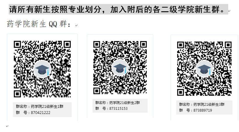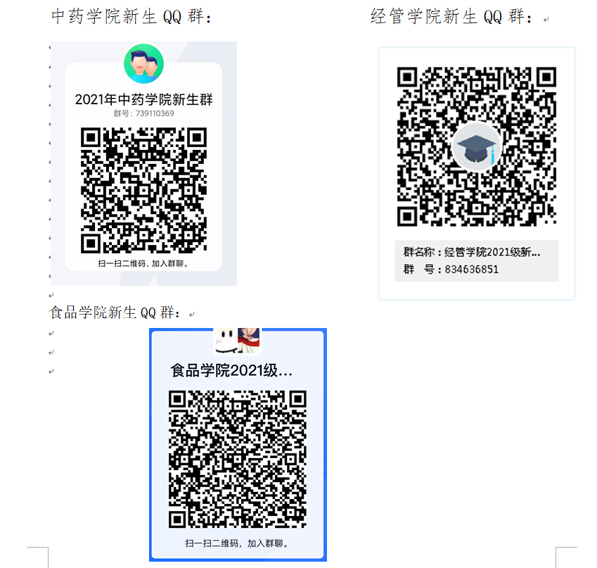 请所有新生按照专业划分,加入附后的各二级学院新生群。