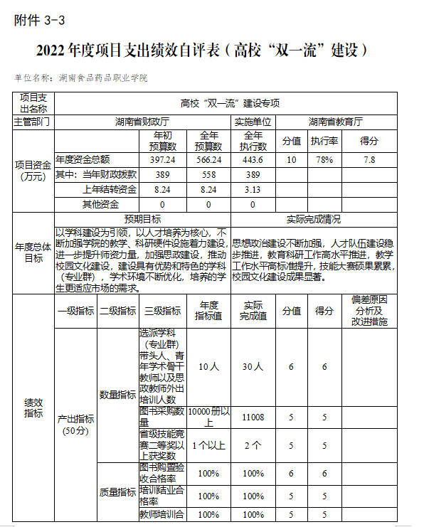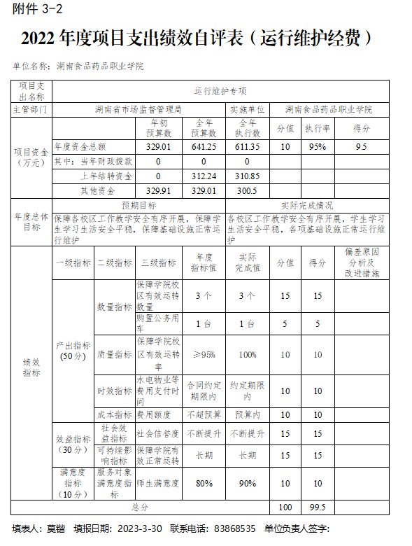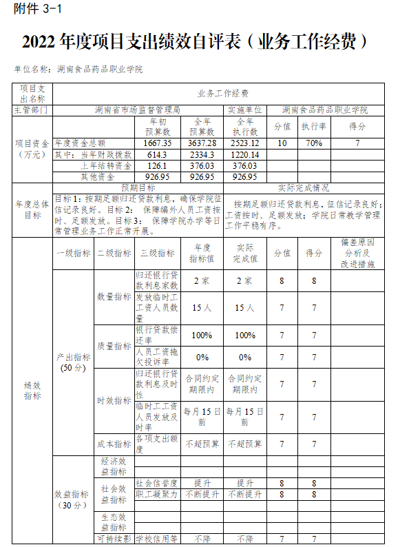 我校坚决贯彻落实校党委会决策部署,根据“双监控”工作要求,结合整体支出情况,对照各部门及二级学院的年初绩效目标,采取科学有效的方式,开展整体支出绩效运行监控自评自查,对评价结果进行评分评级,并把评分结果纳入各部门及二级学院的年度绩效考核,作为下一年度预算安排重要依据。部门整体支出绩效自评报告将按照主管部门的相关要求予以公开。