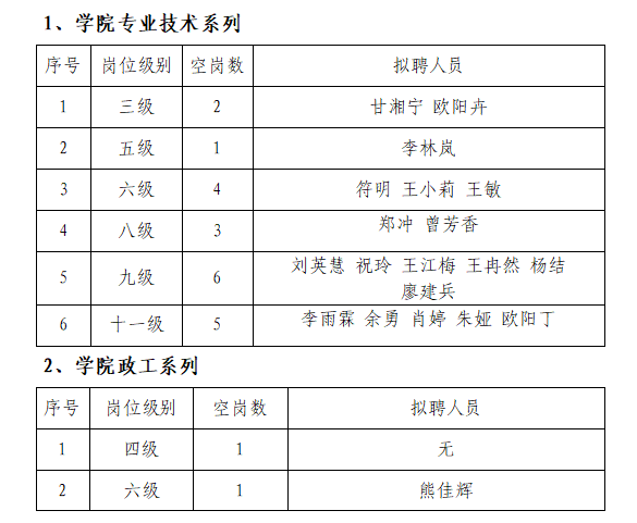 根据《湖南食品药品职业学院专业技术岗位定级工作实施方案》、《湖南省医药技工学校专业技术岗位定级工作实施方案》要求,经个人申报、资格审查,业绩评审,并报学校专业技术岗位定级工作领导小组会议审定,现将拟聘人员定级情况公示如下: