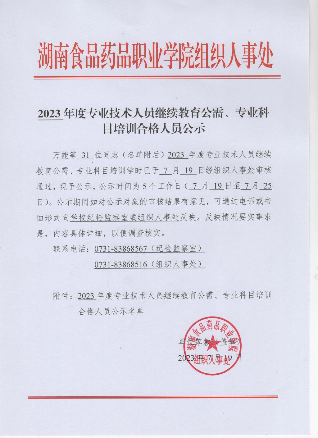 2023年度专业技术人员继续教育公需、专业科目培训合格人员公示