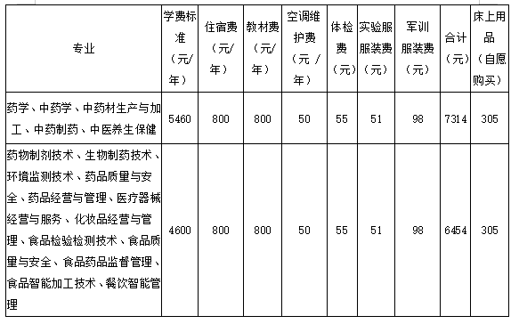 注:床上用品为自愿购买;军训服费用由供应商于开学领取时收取。