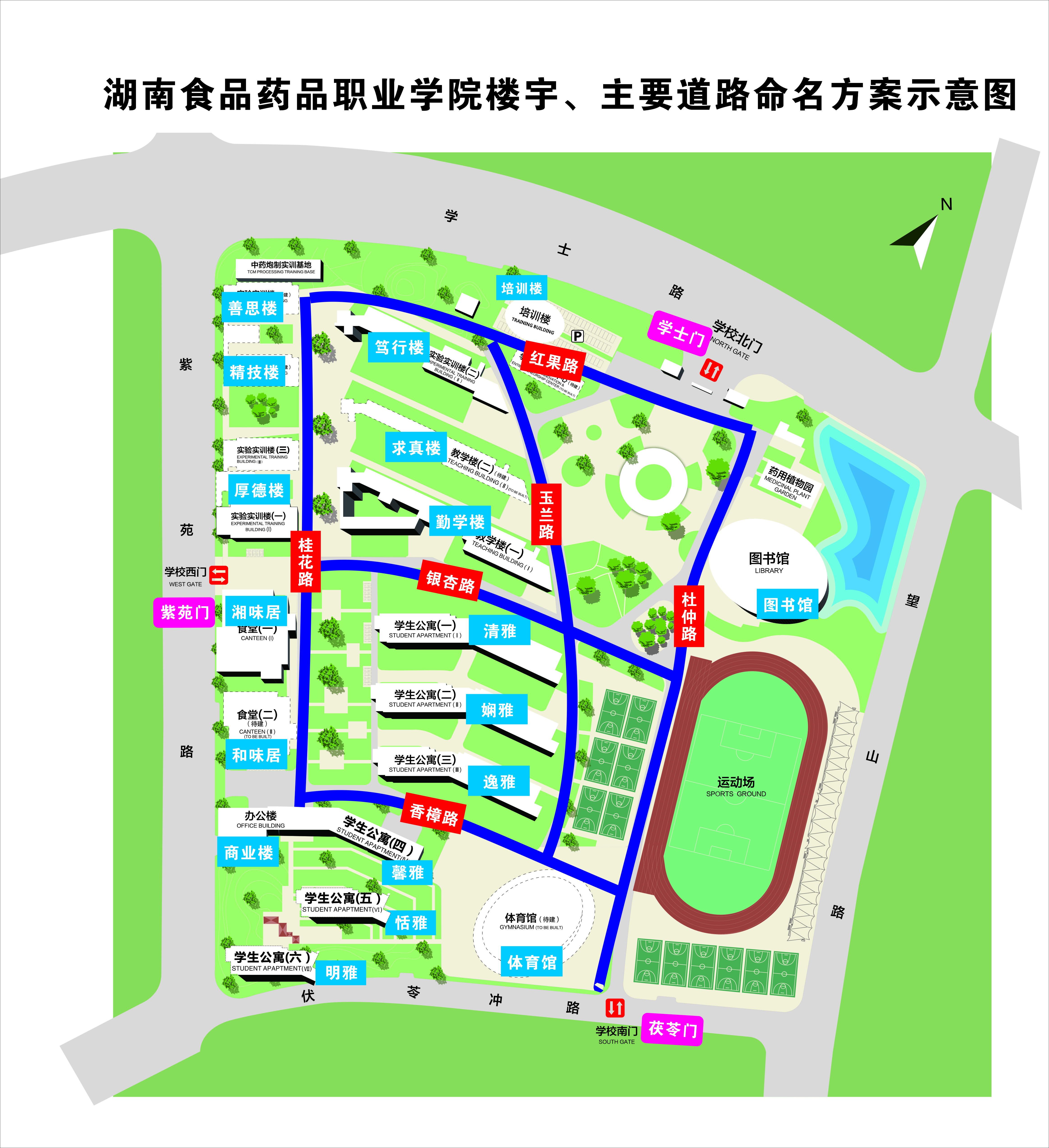 附件下载:湖南食品药品职业学院楼宇道路大门命名方案