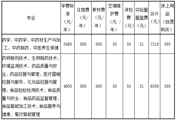 注:床上用品为自愿购买;军训服费用由供应商于开学领取时收取。