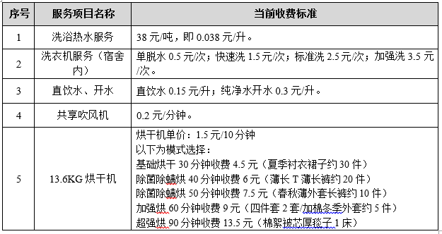 (三)水电费。按国家相关规定,在校学生每人每月可免5度电、3立方水,超过部分按城市居民水电价格收取。