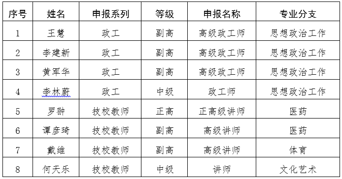 根据《关于做好2024年度全省高级职称评审工作的通知》(湘人社函〔2024〕72号)等文件精神,结合学校职改工作要求,学校组织职能部门对申报非高教系列职称人员进行了资格审查,现将申报人员资格审查通过名单予以公示。