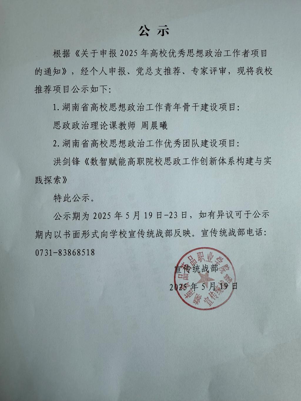 上一篇:湖南食品药品职业学院 2025年“双师型”教师认定初审结果公示