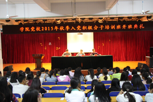 10月13日下午,学院党校2015年秋季入党积极分子培训班开班仪式在多功能报告厅举行。院党委副书记、副院长、党校校长李光锋同志作动员报告,学院党委书记欧阳黎明同志出席并作重要讲话,仪式由组织人事处处长、党校常务副校长黄东泉同志主持,207名入党积极分子及各党总支负责人参加了开班仪式。