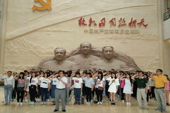 5月14号下午,学院党校2016年春季入党积极分子培训班的党课搬到了湖南党史陈列馆。此次教学共分为三个环节,分别是参观湖南党史陈列馆各展厅、伟人雕塑前宣誓和馆前留影。
