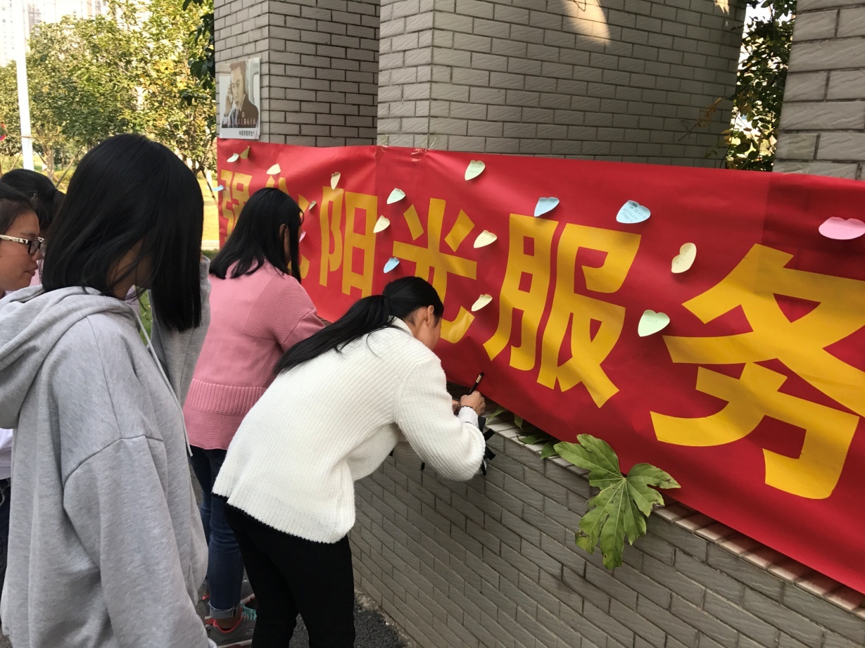 2017年11月2日中午,为进一步推进教育阳光服务工作,学校组织青年志愿者,在食堂门口通过现场宣讲、学生现场咨询等形式对我校教育阳光服务平台进行了宣传。