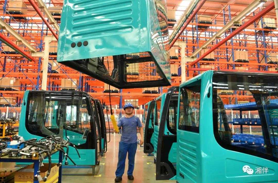 9月18日,山河智能装备股份有限公司挖掘机智能装配车间,技术人员在生产线上忙着装配挖掘机。湖南日报首席记者 郭立亮 摄