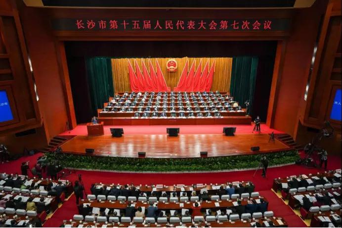 ▲长沙市第十五届人民代表大会第七次会议会场。