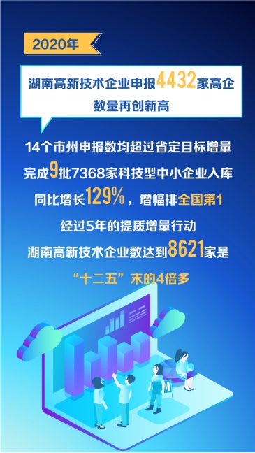 经过5年的增量提质行动,湖南高新技术企业数达到8621家,是“十二五”末的4倍多,近三年在全国排名每年提升1位。