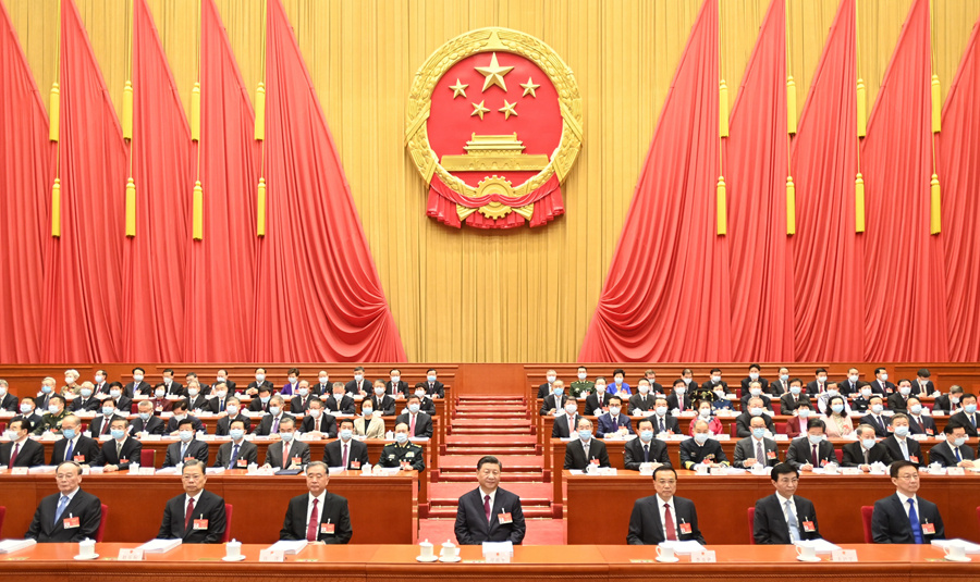 习近平、李克强、汪洋、王沪宁、赵乐际、韩正、王岐山和大会主席团成员在主席台就座。