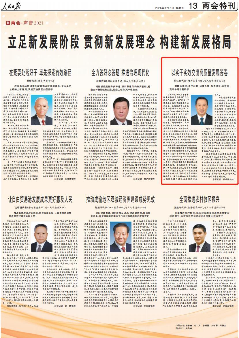 习近平总书记去年考察湖南时勉励我们打造“三个高地”、践行“四新”使命,叮嘱在推动高质量发展上闯出新路子。我们把总书记擘画的宏伟蓝图转化为实施“三高四新”战略、建设现代化新湖南的生动实践,努力以实干实效交出高质量发展答卷。