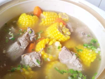玉米是一种粗粮,含有较多粗纤维,能加快肠道蠕动,对人体健康有诸多好处,可缓解便秘;排骨除含蛋白质、脂肪、维生素外,还含有大量磷酸钙、骨胶原、骨粘蛋白等,可为幼儿和老人提供钙质。
