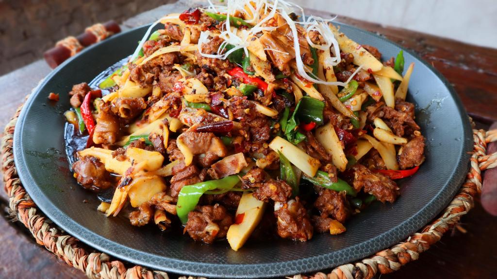 做法:鸭肉洗干净,切成块状,焯水,姜洗净切好备用,锅中下油,生葱、蒜下锅爆香,随后把鸭肉放入翻炒,再加入适量老抽,翻炒一会之后加入料酒、适量清水,盖上锅盖焖一个小时左右,鸭肉变软之后,放入姜丝和青椒翻炒,然后收汁即可。