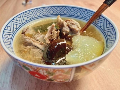原料:陈皮、鸭肉、带皮冬瓜、薏米、芡实、生姜。