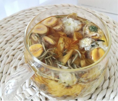做法:将金银花、金莲花、贡菊放入杯中,罗汉果掰碎,加入半杯清水洗一遍,把水倒掉再往杯中倒沸水,大约八分满,泡5-10分钟即可。